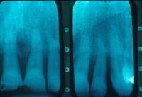 Las radiografías de la férula acabada verifican la unión de los incisivos con periodontitis.