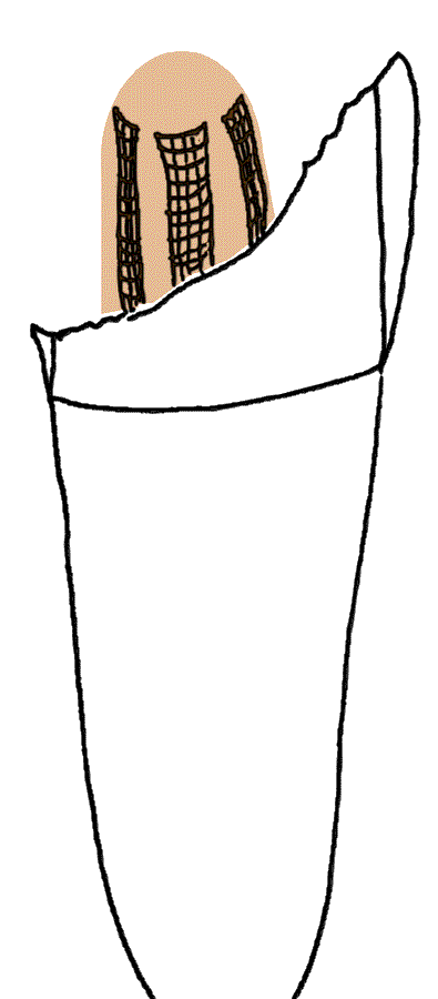 Las fibras de refuerzo periodontales tipicas, se fabrican para dientes anteriores inferiores. La longitud de su raíz y forma hace que estos dientes sean más susceptibles a la movilidad en presencia de destrucción periodontal.