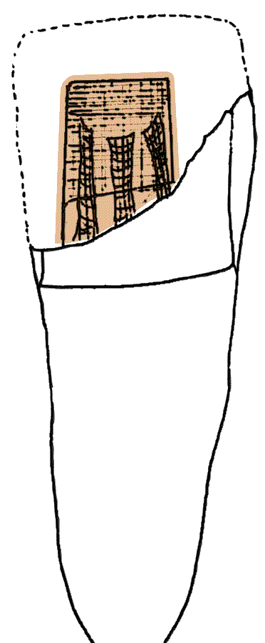 Basándose en la cantidad de diente en la corona, el acceso al canal y la oclusión se decidió utilizar un color neutro y la técnica de Ribbond de poste y muñón. La restauración final se hizo con una corona completa de cerámica.